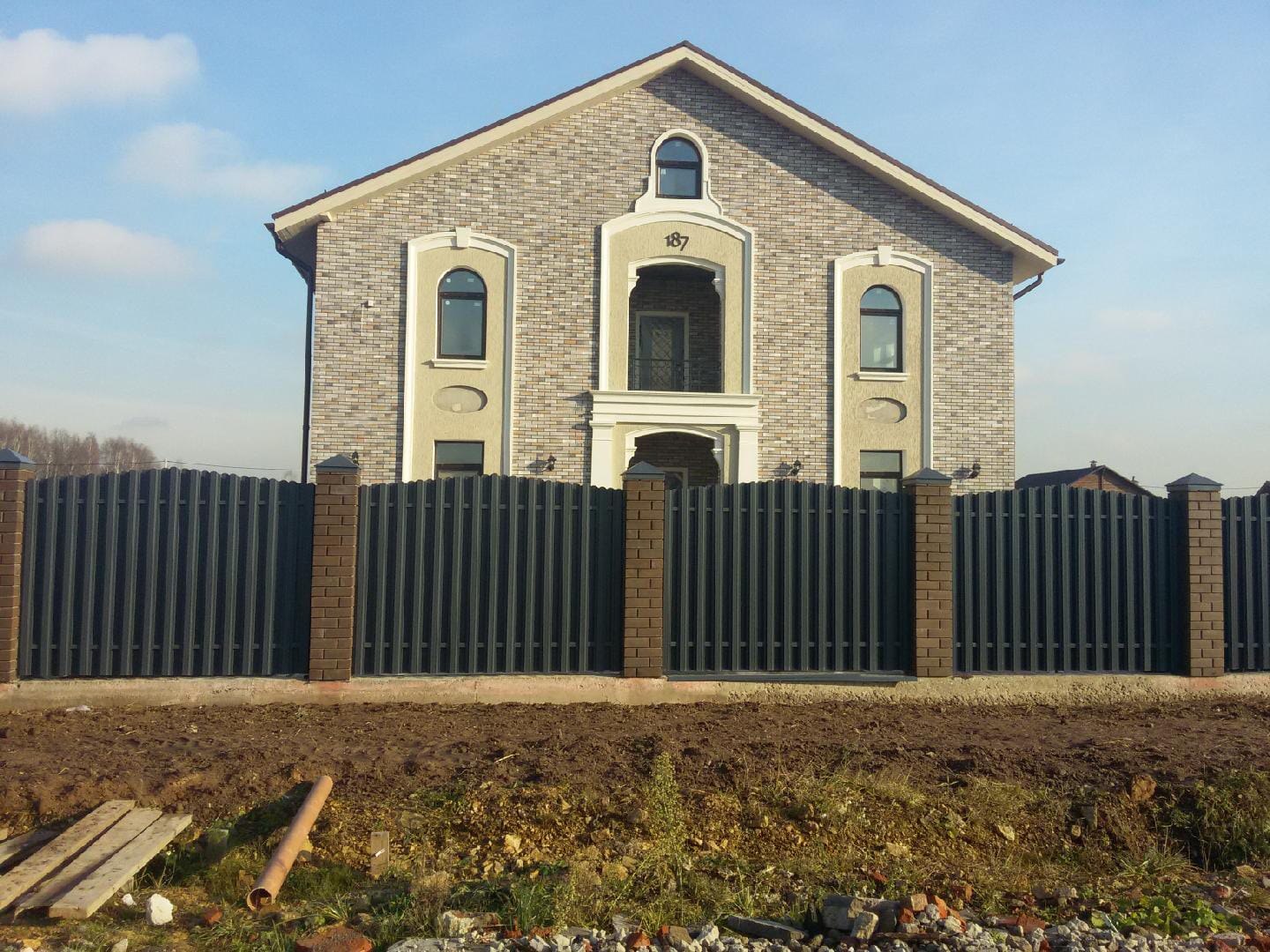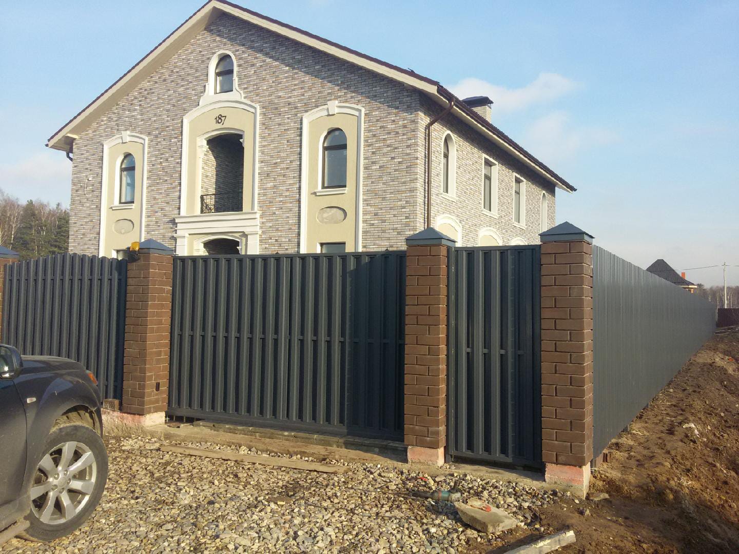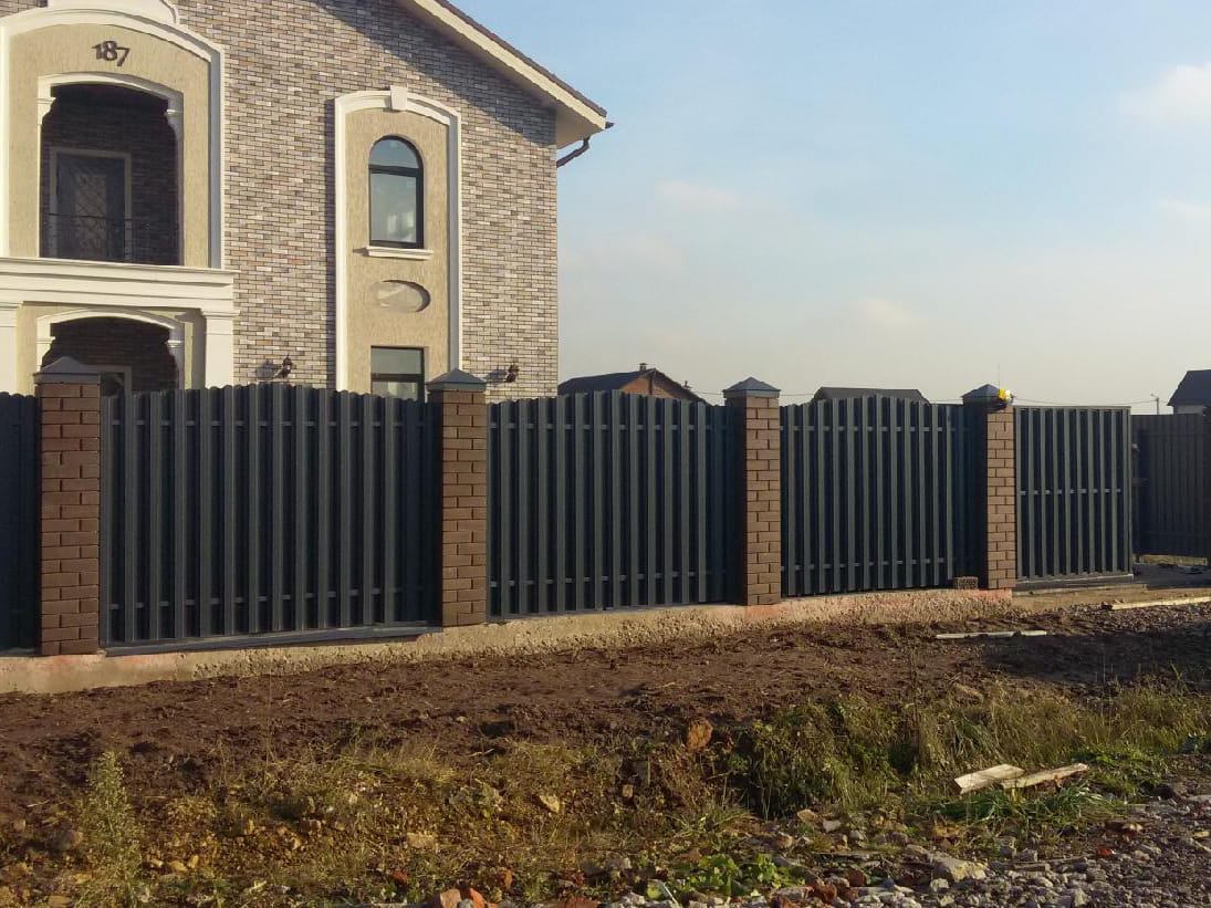 Откатные ворота из евроштакетника на винтовых сваях (цена на бетонном основании +20000р)