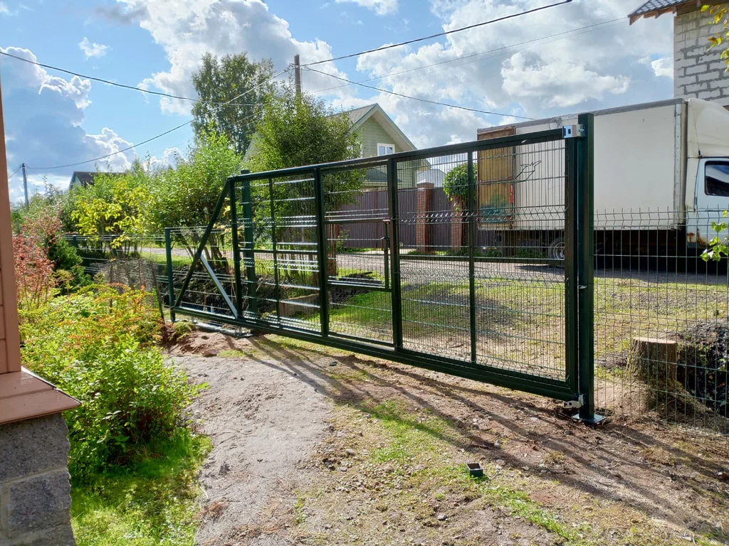 Откатные ворота из 3Д-гиттер на винтовых сваях (цена на бетонном основании +20000р)